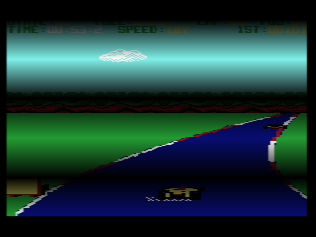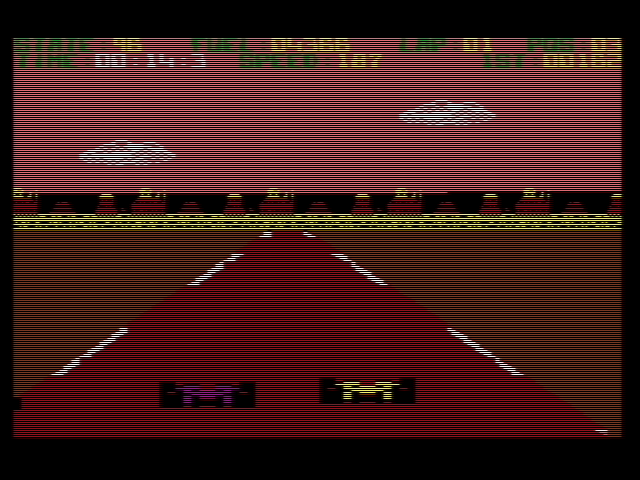 First of all congratulations for achieving your goals. I really appreciate your efforts, as new racing games are rarely released. When thinking about the old racing games of the C64, always Pole Position, Super Cycle and The Great American Cross Country Road Race come into my mind. I loved all of these games and they showed, how smooth racing games can be on the C64. I always dreamt about a new racing game, that crosses the boundaries of those old games, as so many new games show, what's possible on the original hardware, despite using a whole floppy disk or a complete EasyFlash cartridge. Keep it on and maybe hi-res mode might give you more opportunites as well. Just a thought. I will keep tracking you, promised. Cheers